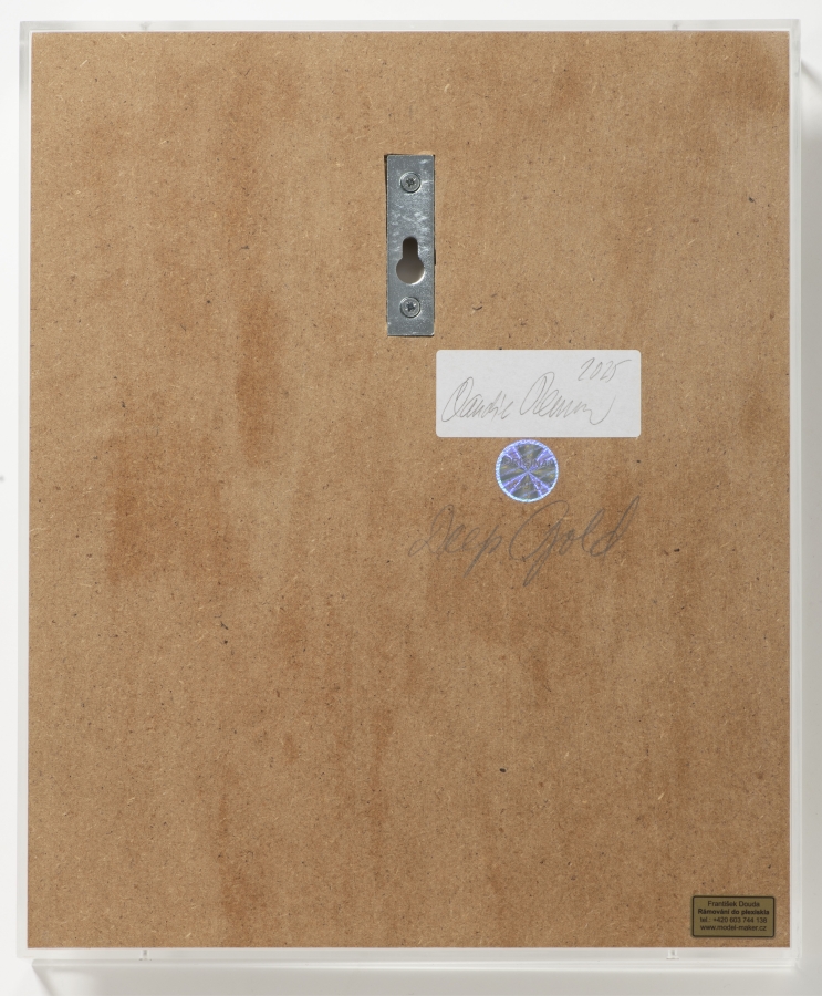 signováno, datováno a popsáno vzadu: Claudie Resner 2025 Deep Gold