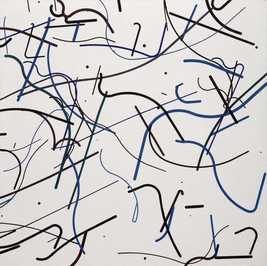 verso signed, dated and inscribed on the blind frame: Zdenek Sykora: LINIE Nr. 61, 147 x 147 cm, 1989